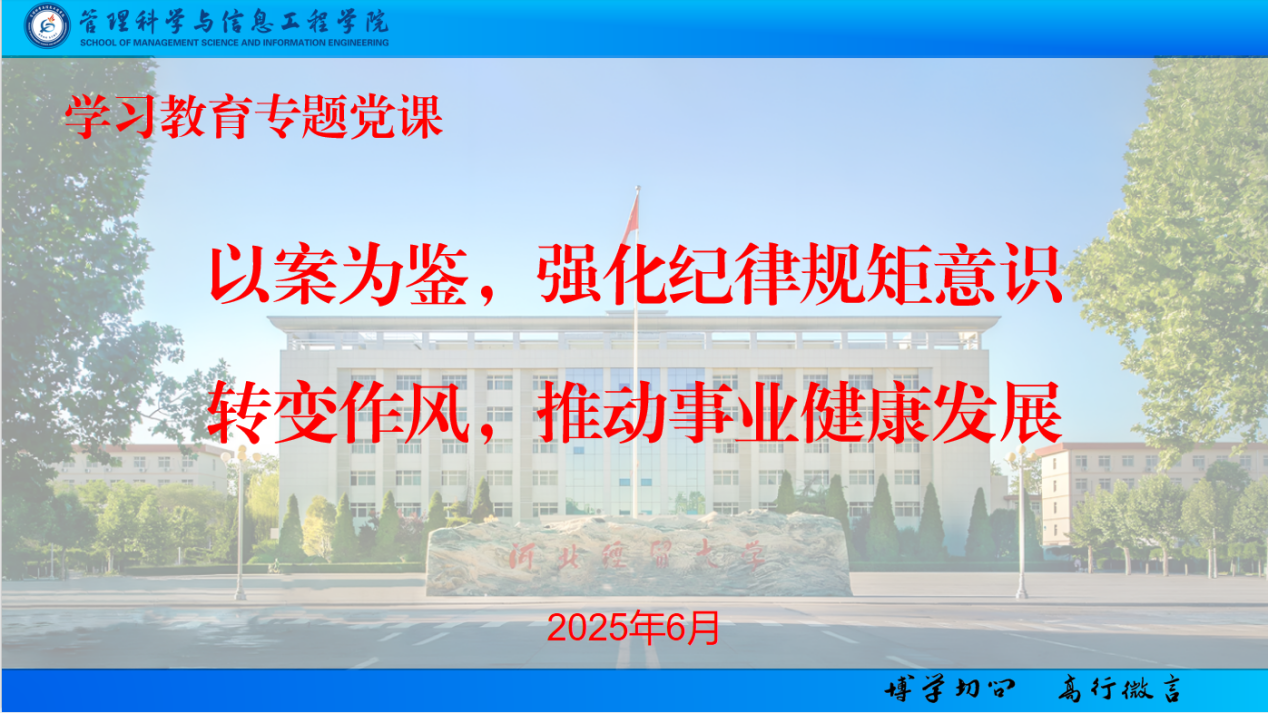 王剑彪以《以案为鉴,强化纪律规矩;转变作风,推动事业健康发展》为题,对中央党的建设工作领导小组第13次会议精神、集中整治违规吃喝的通知进行了解读学习,结合三河市违规牌匾问题和违规吃喝典型案例,深入分析问题根源,剖析了案例中暴露出的“四风”问题新动向,并从纠四风、树新风、转作风、强服务等四个方面对全体党员提出了要求。