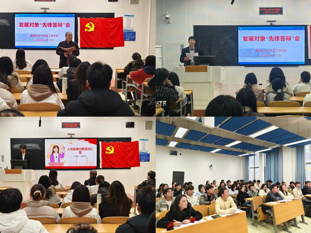 为强化对发展对象的综合考察,严把党员发展入口关,11月10日下午,学院举办了发展对象“先锋答辩”会。学院党委书记王剑彪、党委委员付春方、专职组织员、学生党支部书记等组成答辩评审组,43名发展对象参加答辩,100余名入党积极分子代表旁听答辩会。