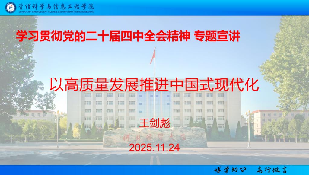 为深入学习贯彻党的二十届四中全会精神,引导全体教职工深刻领会全会精神实质,11月24日,学院党委书记王剑彪面向全体教职工讲授学习贯彻党的二十届四中全会精神专题党课。